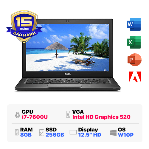 Sức mạnh đến từ bộ vi xử lý Intel Core i5-7200U, kết hợp cùng RAM 8GB và ổ SSD 256GB, giúp Dell 7280 xử lý nhanh các tác vụ văn phòng, trình duyệt web nhiều tab, chỉnh sửa văn bản hay chạy các phần mềm quản lý nhẹ. Khởi động máy và truy cập dữ liệu chỉ trong vài giây – tiết kiệm tối đa thời gian cho công việc.