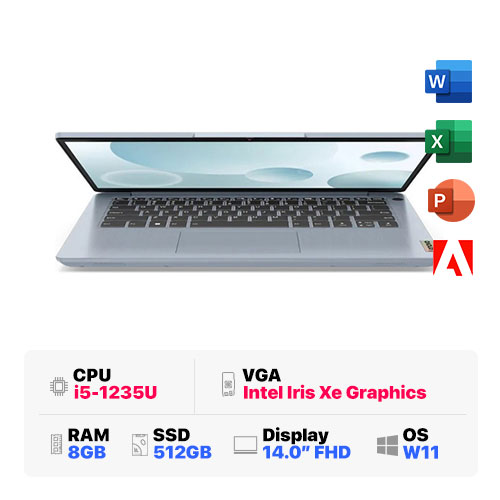Lenovo IdeaPad 3 14IAU7 82RJ001BVN : i5-1235U | 8GB RAM | 512GB SSD | Intel Iris Xe Graphics | 14 inch FHD | Finger | Windows 11 | Misty Blue