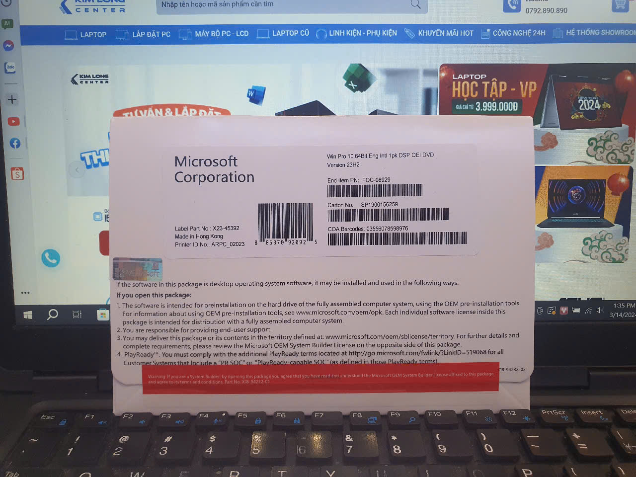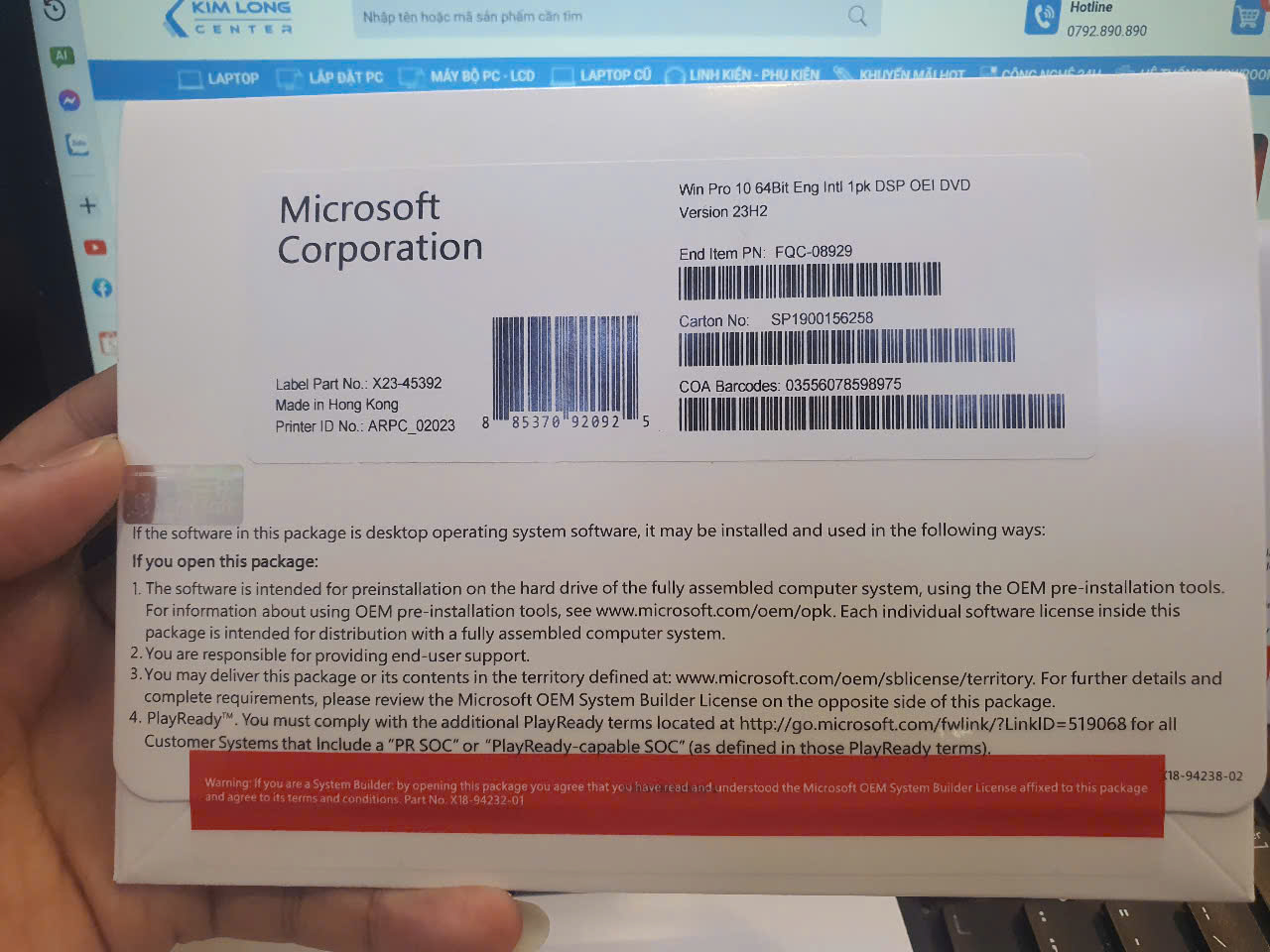 Hệ Điều Hành / Operating System Phần mềm Microsoft Windows Pro 10 64Bit Eng Intl 1pk DSP OEI DVD (FQC-08929)
