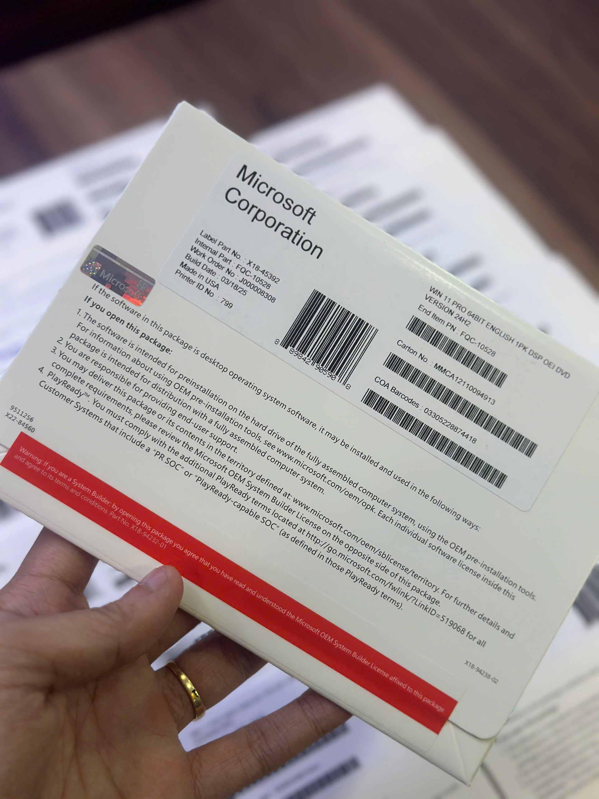 | Hệ Điều Hành / Operating System | Phần mềm Microsoft Windows Pro 11 64Bit Eng Intl 1pk DSP OEI DVD (FQC-10528) |