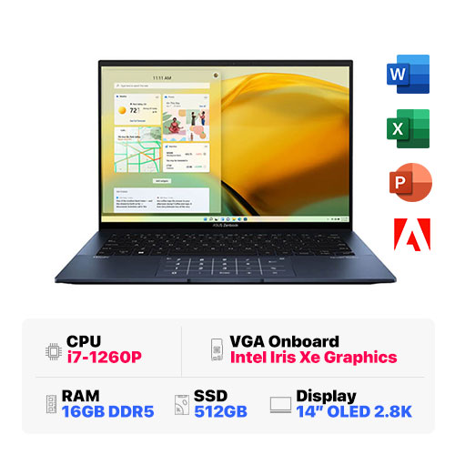 ASUS Zenbook 14 OLED UX3402ZA-KM221W : i7-1260P Evo | 16GB RAM | 512GB SSD | Iris Xe Graphics | 14 inch OLED 2.8K | Windows 11 | Ponder Blue