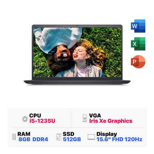 Dell Inspiron 3520 N3520-i5U085W11BLU : i5-1235U | 8GB RAM | 512GB SSD | Intel Iris Xe Graphics | 15.6 inch FHD | Windows 11 + Office | Carbon Black