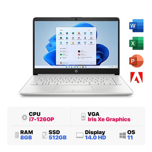 HP 14s-dp5052TU 6T6R2PA : i7-1260P | 8GB RAM | 512GB SSD | Intel Iris Xe Graphics | 14 inch HD | Windows 11 | Silver