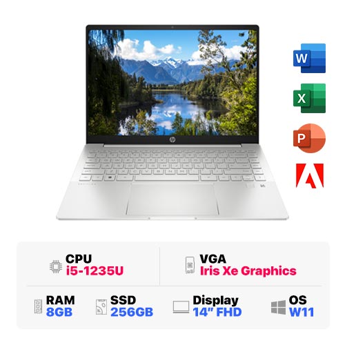 HP Pavilion 14-dv2036TU 6K772PA : i5-1235U | 8GB RAM | 256GB SSD | Intel Iris Xe Graphics | 14 inch FHD | Windows 11 | Silver
