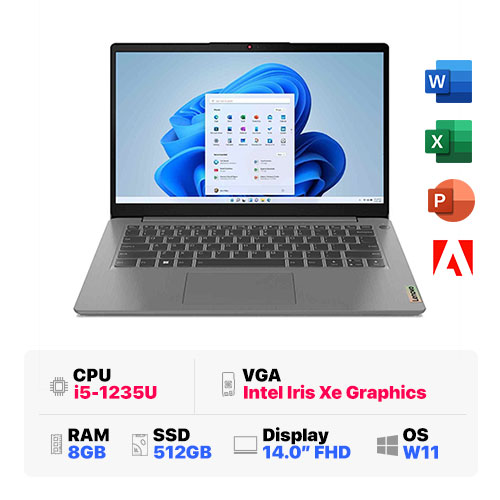 Lenovo IdeaPad 3 14IAU7 82RJ0019VN : i5-1235U | 8GB RAM | 512GB SSD | Intel Iris Xe Graphics | 14 inch FHD | Finger | Windows 11 | Arctic Grey