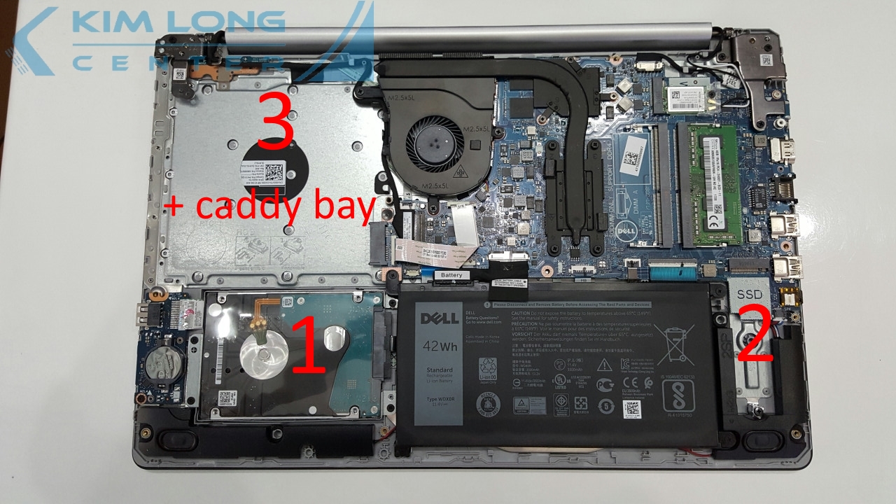 Điều này nói lên rằng Dell Inspiron 5570 có thể nâng cấp với khả năng chạy cùng lúc 3 ổ cứng lưu trữ với các chuẩn kết nối khác nhau.