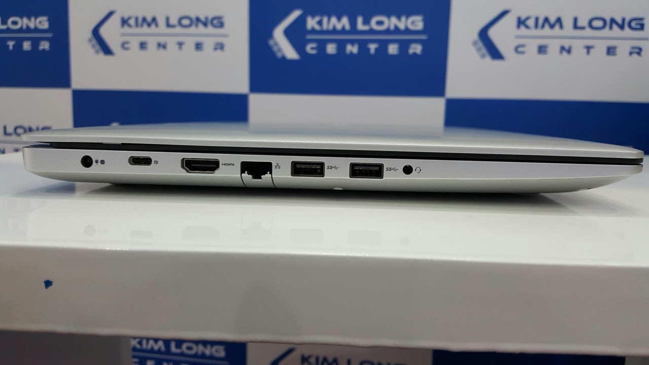 Bên trái là các cổng kết nối : Power, Usb 3.1 Type-C, HDMI , Ethernet, USB 3.1 Gen 1 Type-A, Jack phone/mic